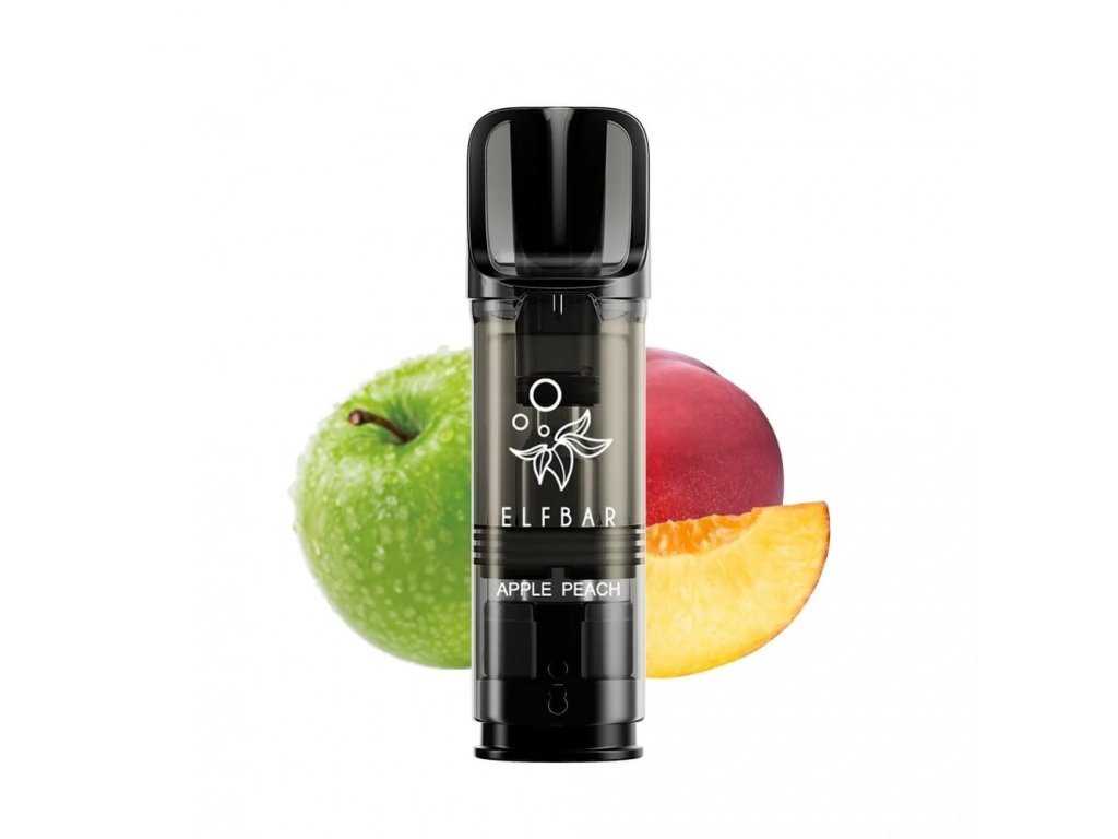 Předplněné Pody pro zařízení ELF BAR ELFA s ovocnou kombinací chutí jablka a broskve. Balení obsahuje dva kusy předplněných Podů (cartridge) o objemu 2x 2 ml. Obsah nikotinové soli je 20 mg/ml. Příchutě jsou velmi autentické, stejně jako u jednorázových e-cigaret ELF BAR.