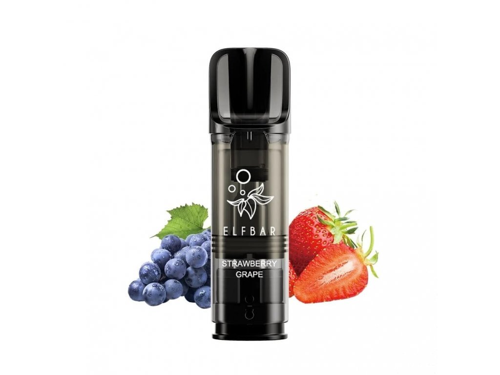 Předplněné Pody pro zařízení ELF BAR ELFA s ovocnou chuťovou kombinací jahod a šťavnatého hroznového vína. Balení obsahuje dva kusy předplněných Podů (cartridge) o objemu 2x 2 ml. Obsah nikotinové soli je 20 mg/ml. Příchutě jsou velmi autentické, stejně jako u jednorázových e-cigaret ELF BAR.